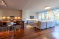 To, co cechuje ten apartament to: duża przestrzeń harmonijnie zaaranżowana w ciepłych barwach, przeszklenia i… ściana zieleni za oknem, gdyż mieszkanie przylega do parku. Wyjątkowy charakter nadają mu też oryginalne indyjskie elementy, takie jak duży stół w jadalni oraz drewniana zabudowa wydzielająca hall.